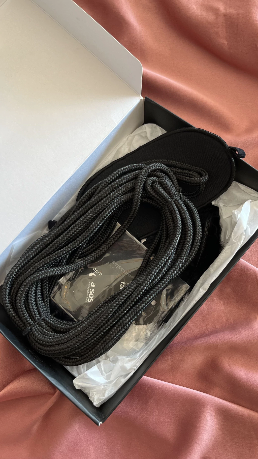 - Cordão de amarração: Ideal para prender pulsos, tornozelos ou improvisar posições criativas