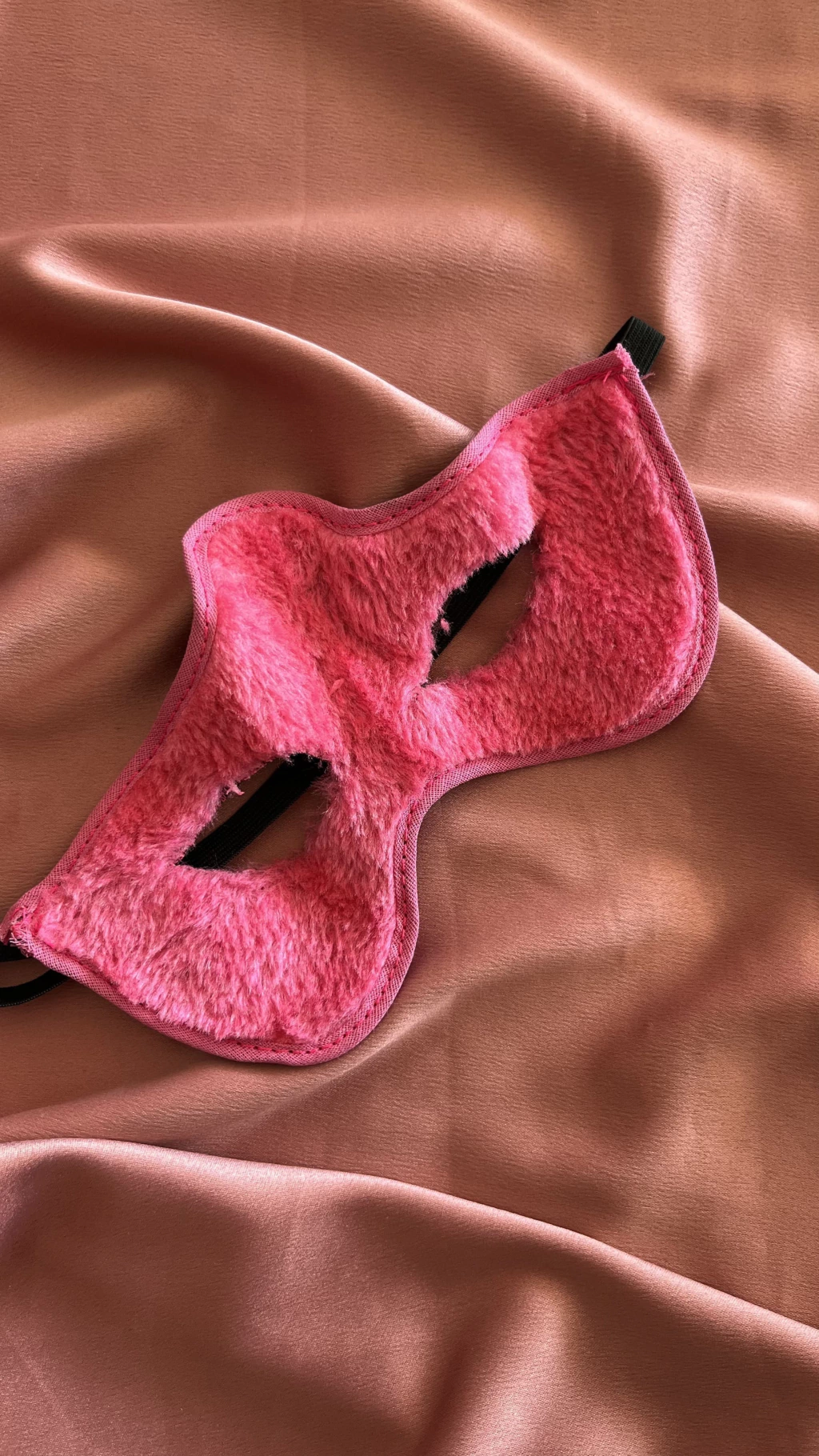 Máscara Gatinho em Pelúcia Rosa – Charme, Mistério e Sedução
